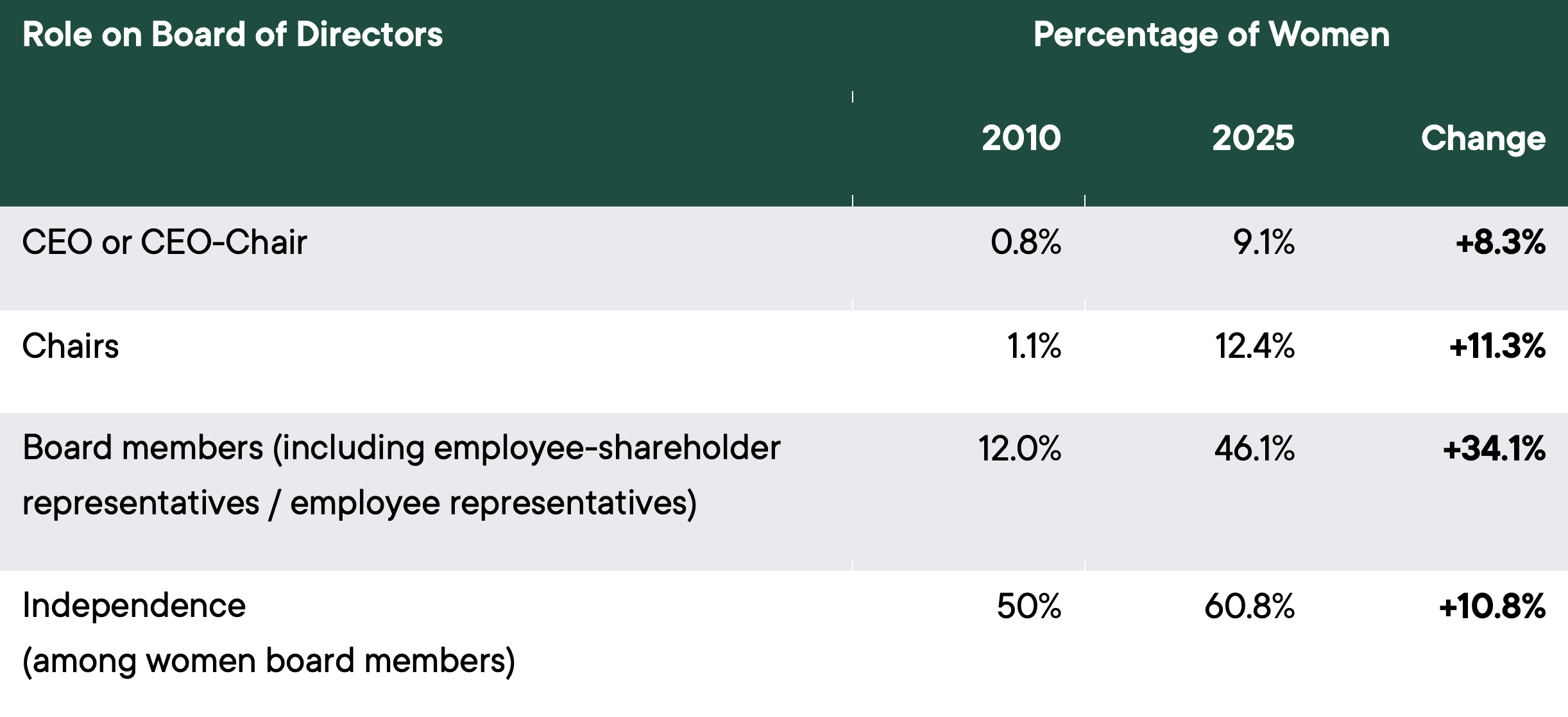 This article discusses the impact of recent legislative changes on board diversity requirements in France, and provides an overview of gender representation within leadership positions in 2025.