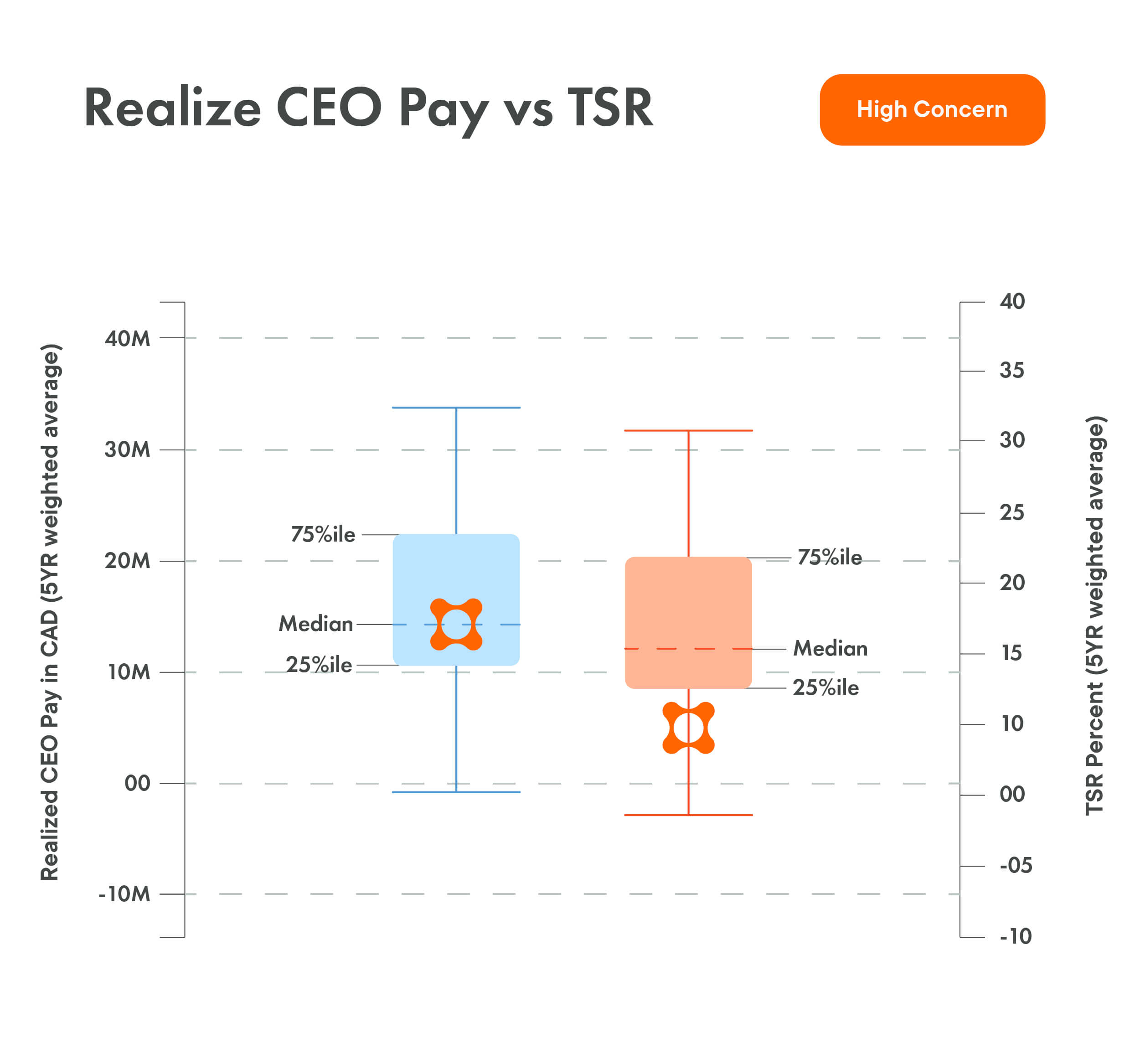- Aggregate of five-year CEO CAP and the reported five-year cumulative TSR (based on Pay versus Performance disclosure as mandated by the SEC)